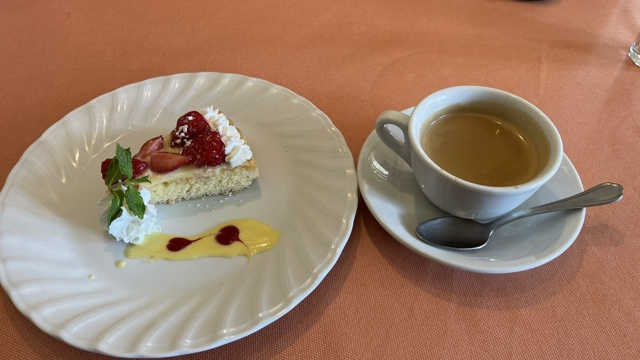 いちごのタルトとエスプレッソコーヒー。