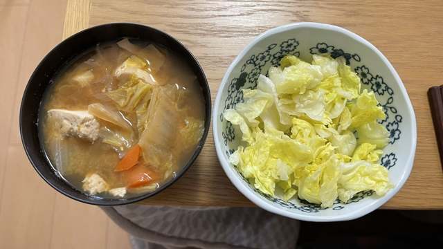 鶏肉とキャベツのチーズ煮は2日目ということで味が馴染んでおいしかった。