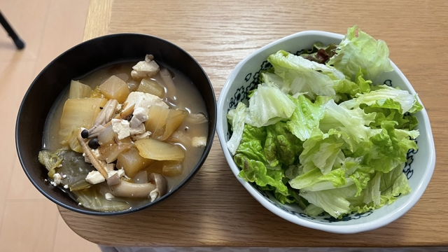 昨日作った味噌汁が野菜盛り沢山で旨い!