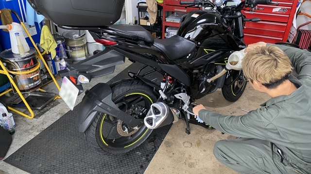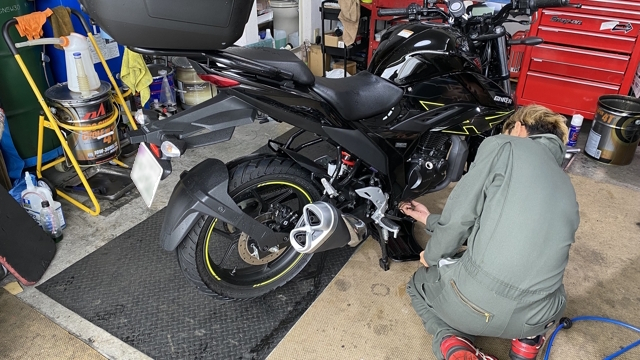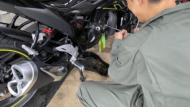 妻のバイクの走行距離が1000kmを超えたので、初回メンテナンスに行ってきた。