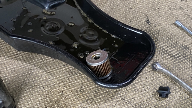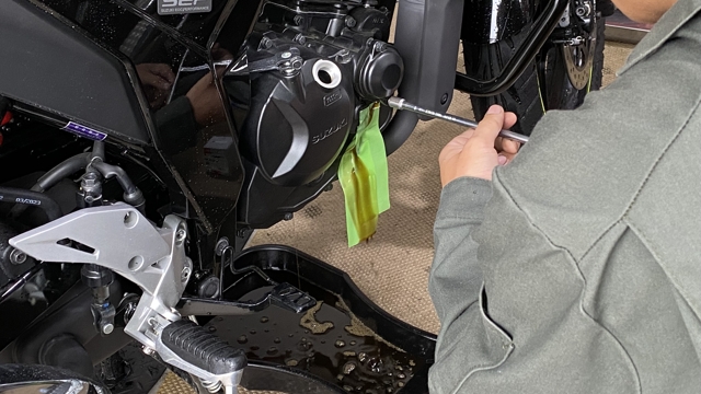 ここでエンジンにオイルが垂れないための技を見せてもらった。