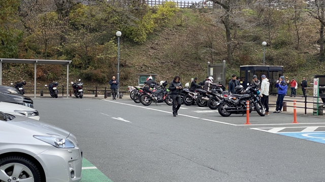 混雑していてもバイクなら駐車スペースにそれほど困らないのがバイクのメリットだろうか。