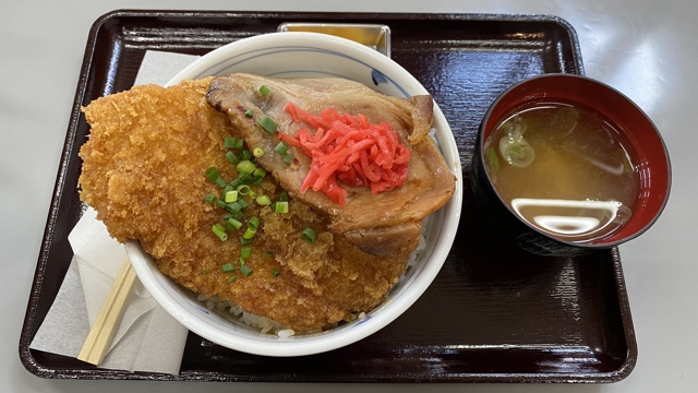 こちらは私が注文したわらじカツと味噌豚焼きの丼。