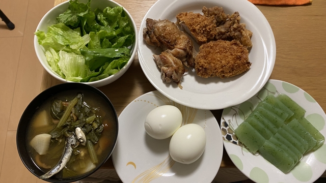 道の駅で買ってきた食材と、福島屋のお惣菜の今日の夕食。