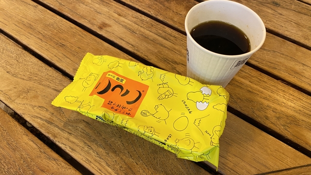 コンビニにもお土産が売られているので、そちらでご当地ものらしきお菓子とコーヒーを買って一休み。
