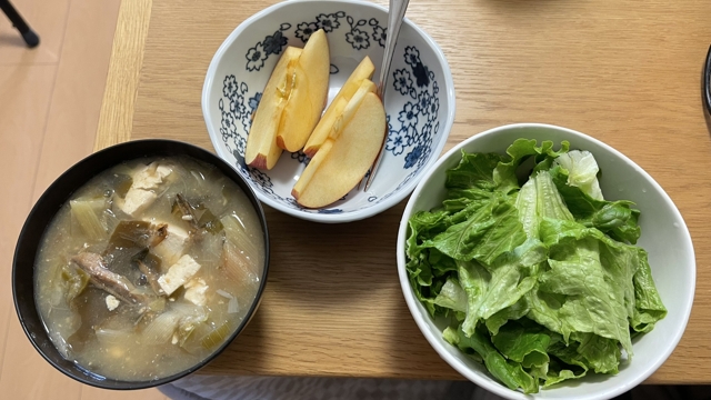 いつもの昼食にリンゴが加わったら何か豪華になった。